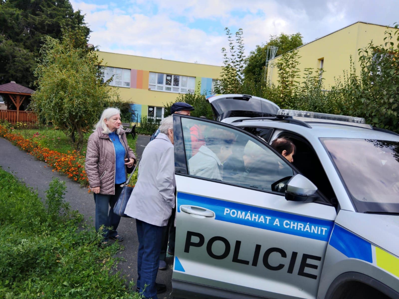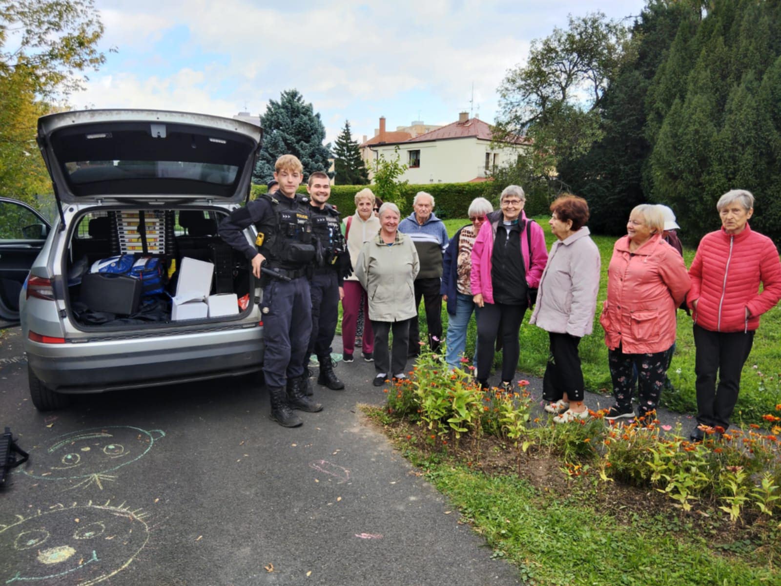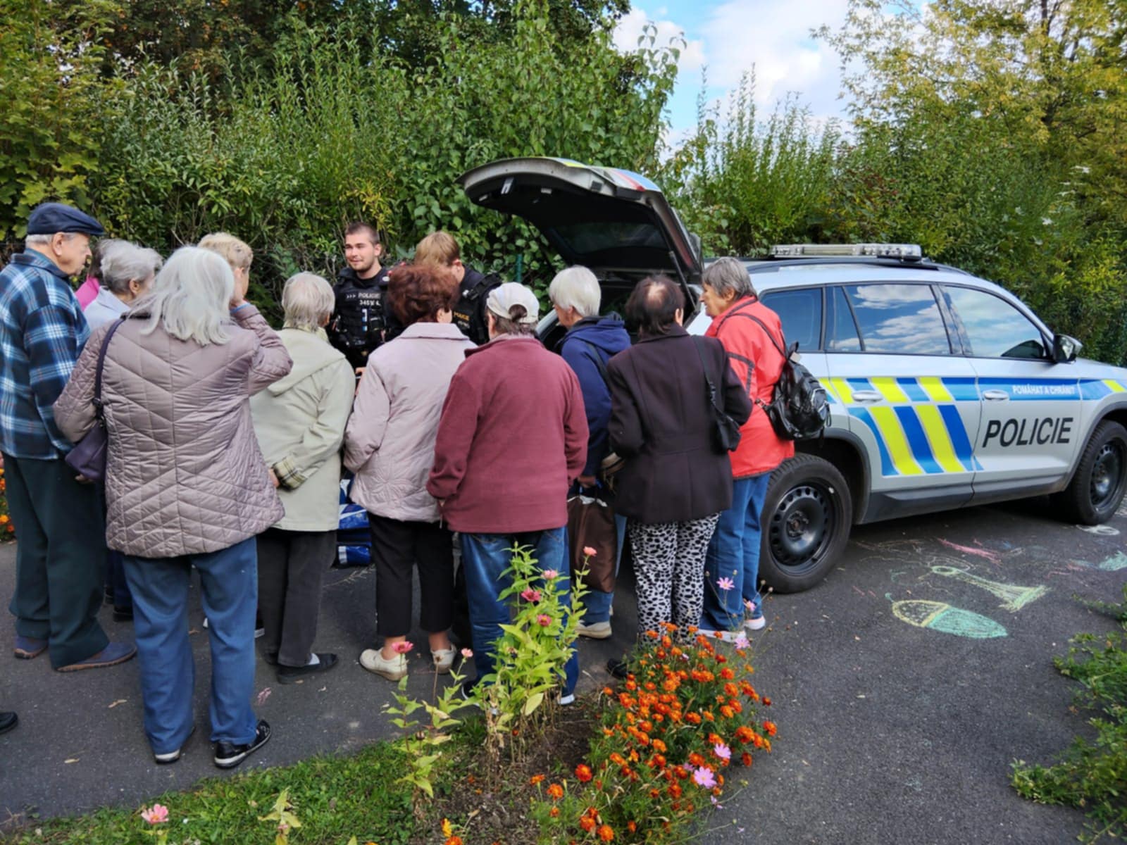 Kolegové z kutnohorské hlídkové služby předvedli seniorům svoji výstroj a výzbroj. Dále s přítomnými probrali jejich úkoly a odpověděli na sposty zajímavých otázek týkajících se služby u Policie ČR.