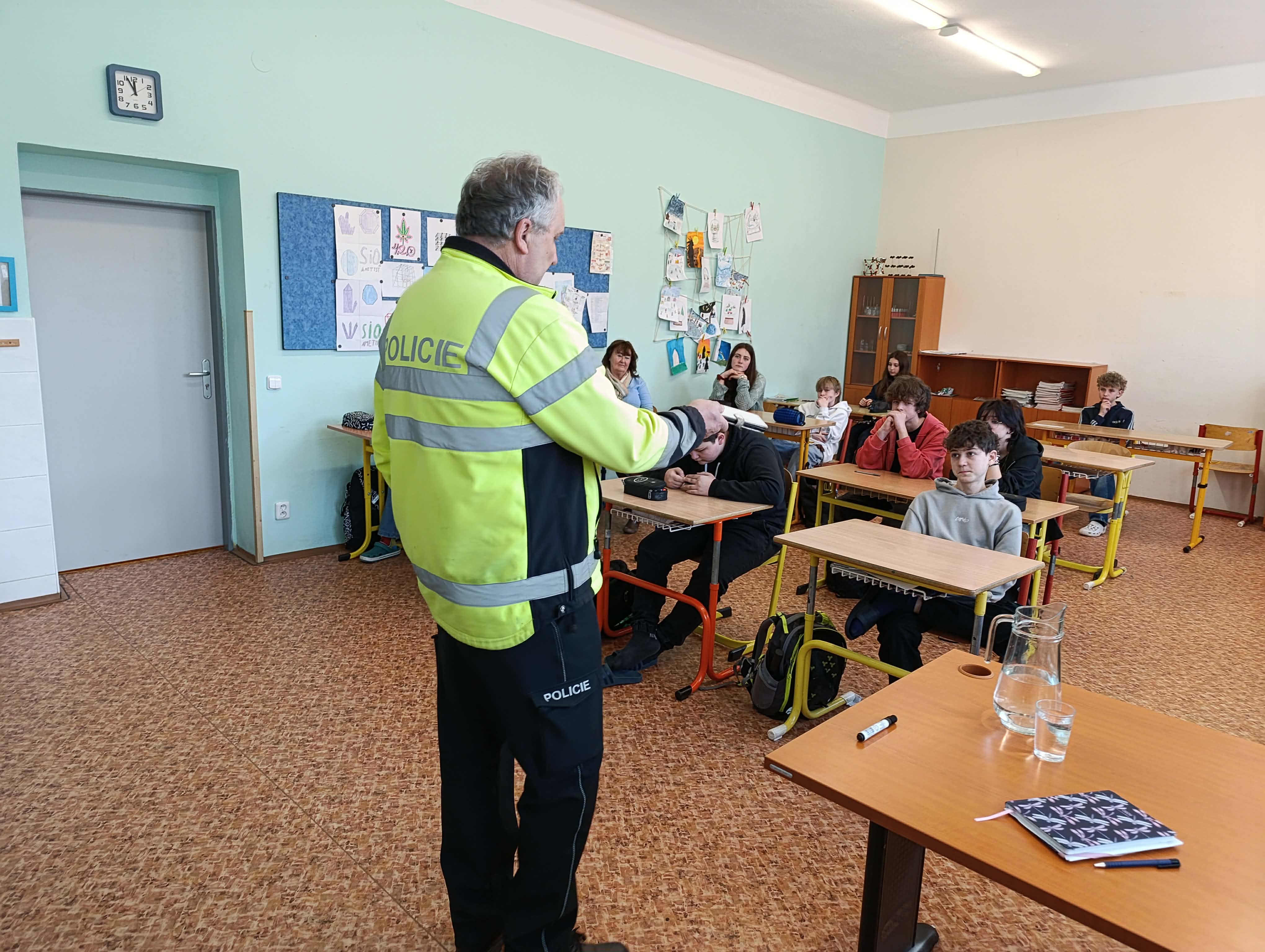 Policista nprap. Bc. Tomáš Vávra, Dis., hovořil s žáky o trestním zákoně a jednotlivých trestných činech. Zmínil věkovou hranici 15 let, která je z tohoto pohledu velmi důležitá, ale také vysvětloval zákonný postup při spáchání trestného činu osobou mladší 15 let. Objasnil některé skutečnosti týkající se trestného činu pomluvy, loupeže, ublížení na zdraví, krádeže, apod.